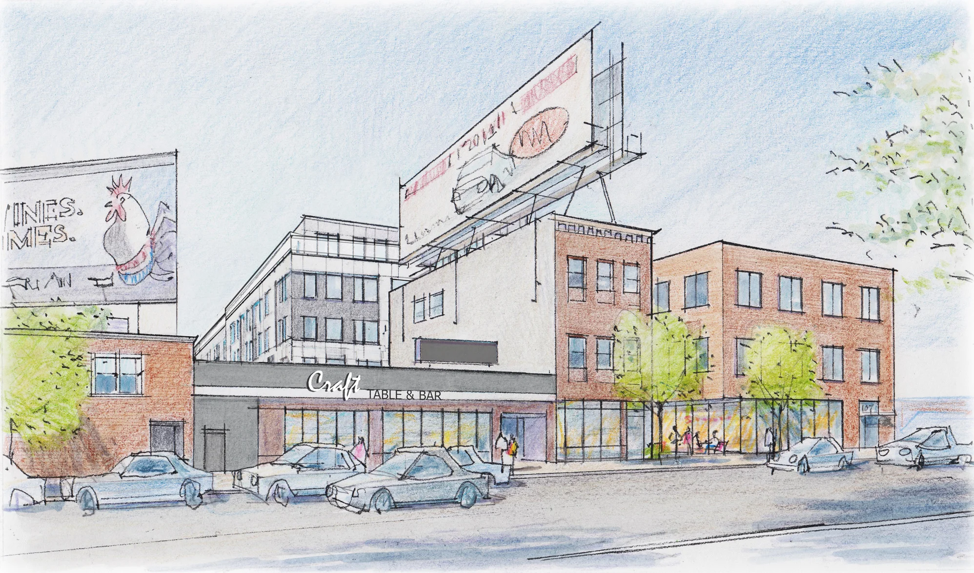 Along Paris Street we have designed a 3 story building with ground floor retail space and 2 levels of commerical space above.