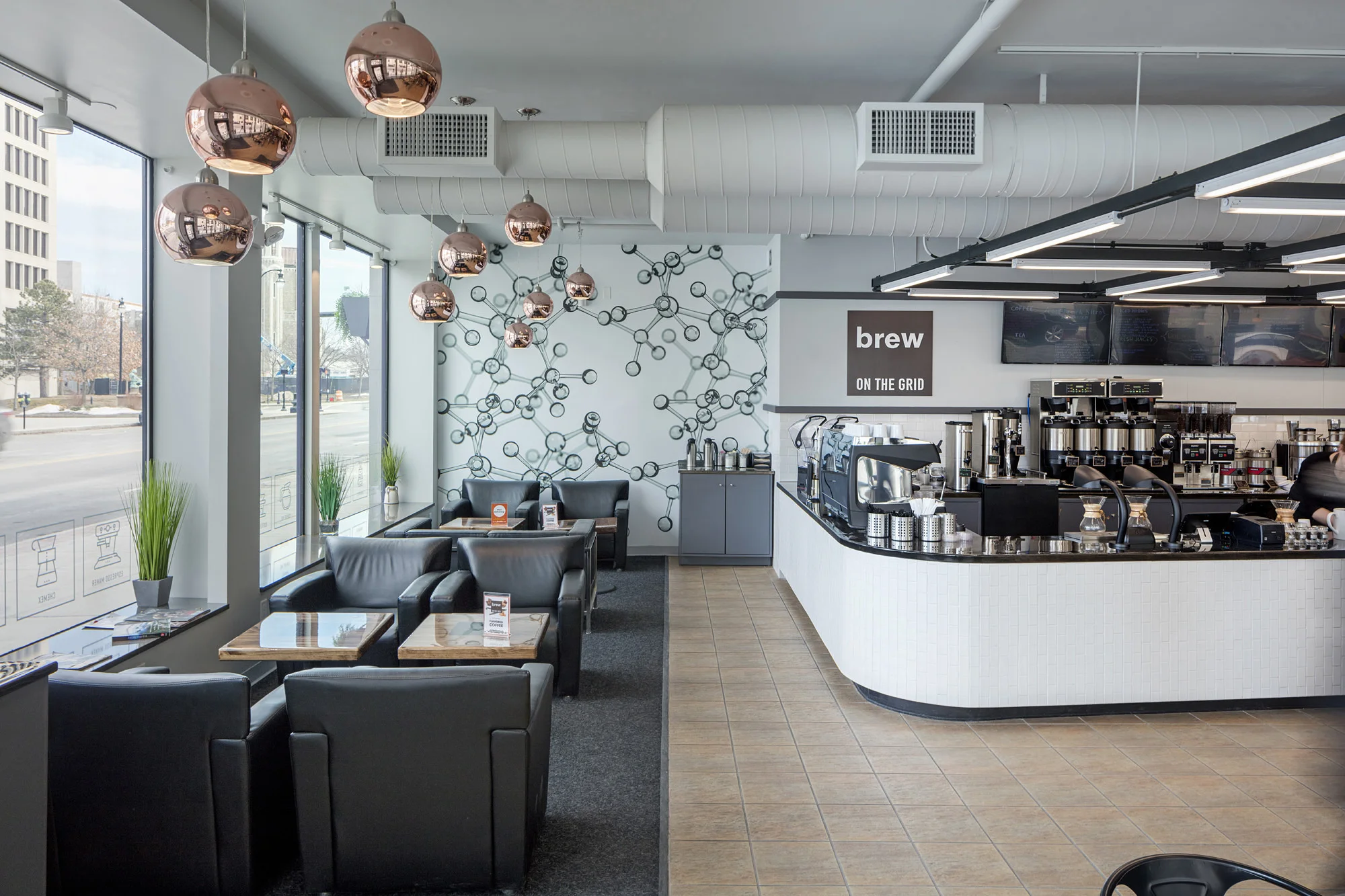Brew on the Grid is an authentic, artisan coffee cafe featuring coffees, breakfast pastries, sandwiches and salads. Brew prides itself on brewing differently with authentic brewing machines. Coffee is brewed on site by highly trained baristas and coffee masters, with state of the art machines to provide you with the best experience and most flavorful cup of coffee. The atmosphere is modern, open and inviting, creating the perfect space to work, study or meet up with friends.