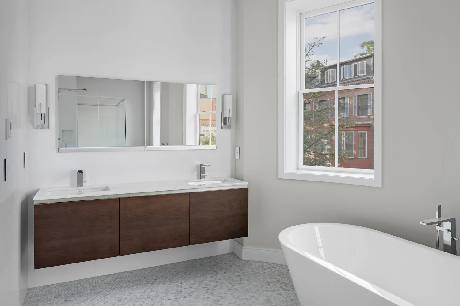 Just steps from Tremont Street, this brownstone is home to two gut renovated modern units. While the lower duplex features a foldable glass wall with access to a private patio, the upper triplex hosts a floor-through Master Suite with a stunning full-width Master Bathroom.