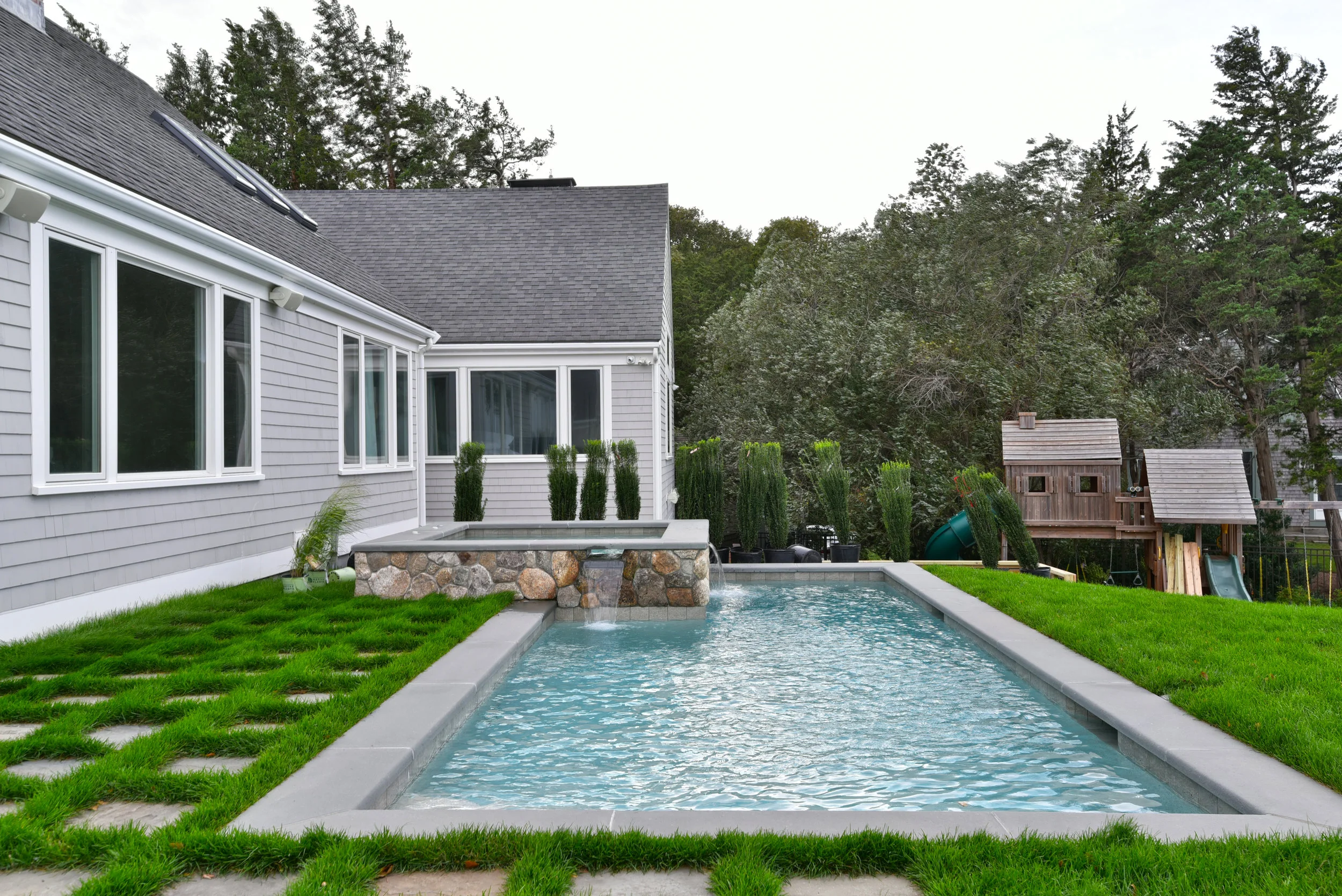 A garage was designed in place of an old greenhouse allowing us to shift the driveway to the west, and increasing view to the water on the east.